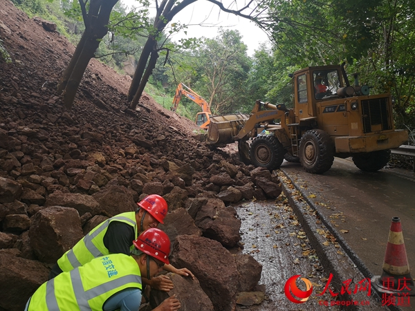 7月22日上午,雨后初晴的天氣涼風習習。在國道318線萬州境內長嶺與長灘兩個鎮(zhèn)鄉(xiāng)之間的一處塌方體前,吳興建正在操作著熟悉的裝載機,加緊搶通道路。正實行半幅通行的公路上,車流如織。項目副經理孟紅偉正帶領搶險突擊隊,在另一側山體上加緊清理前幾天被山洪沖垮、引發(fā)塌方的堆積物,并組織機械人員疏通排水溝,砌筑片石混凝土擋墻。